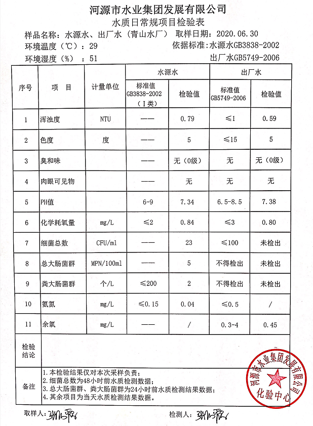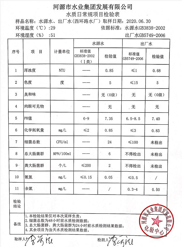 2020年6月30日水質(zhì)檢驗(yàn)報(bào)告